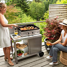 70% van onze planchas worden verkocht in de Edition-versie, met kar en beschermkap. Bied extra werkruimte en opslagruimte met onze slimme, functionele wagens. Praktisch en elegant, eenvoudig te verplaatsen en perfect geschikt voor uw buitenruimte.