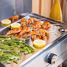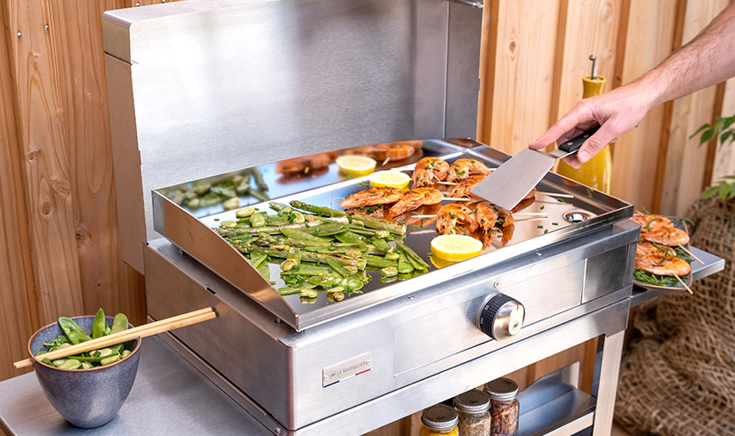 In uw keuken of buitenruimte passen LE MARQUIER elektrische planchas harmonieus het hele jaar door. Met hun frame van roestvrij staal of staal-roestvrijstalen duo zijn ze bestand tegen weersinvloeden en corrosie, en de modellen van satin-roestvrij staal zijn zelfs bestand tegen zeelucht.